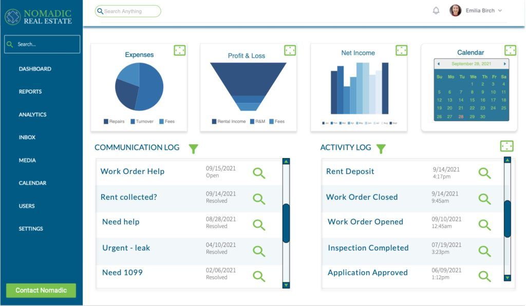2. The activity log provides a linear view of all property activity from owners, tenants, vendors, and Nomadic staff.