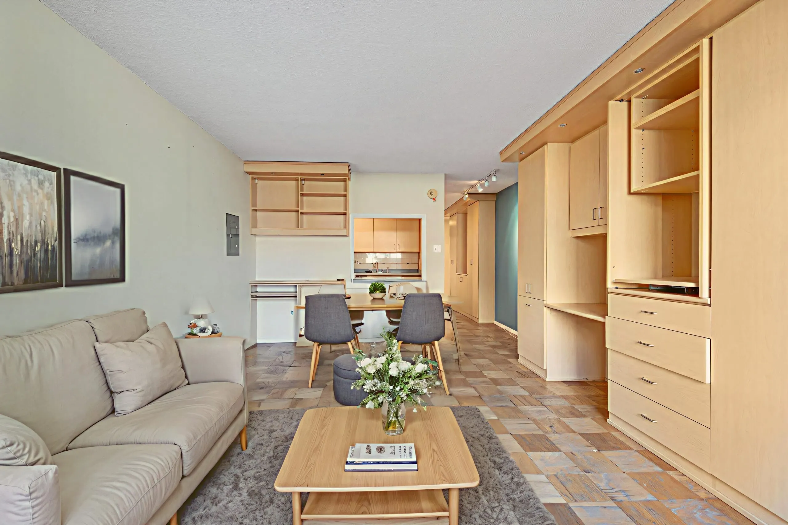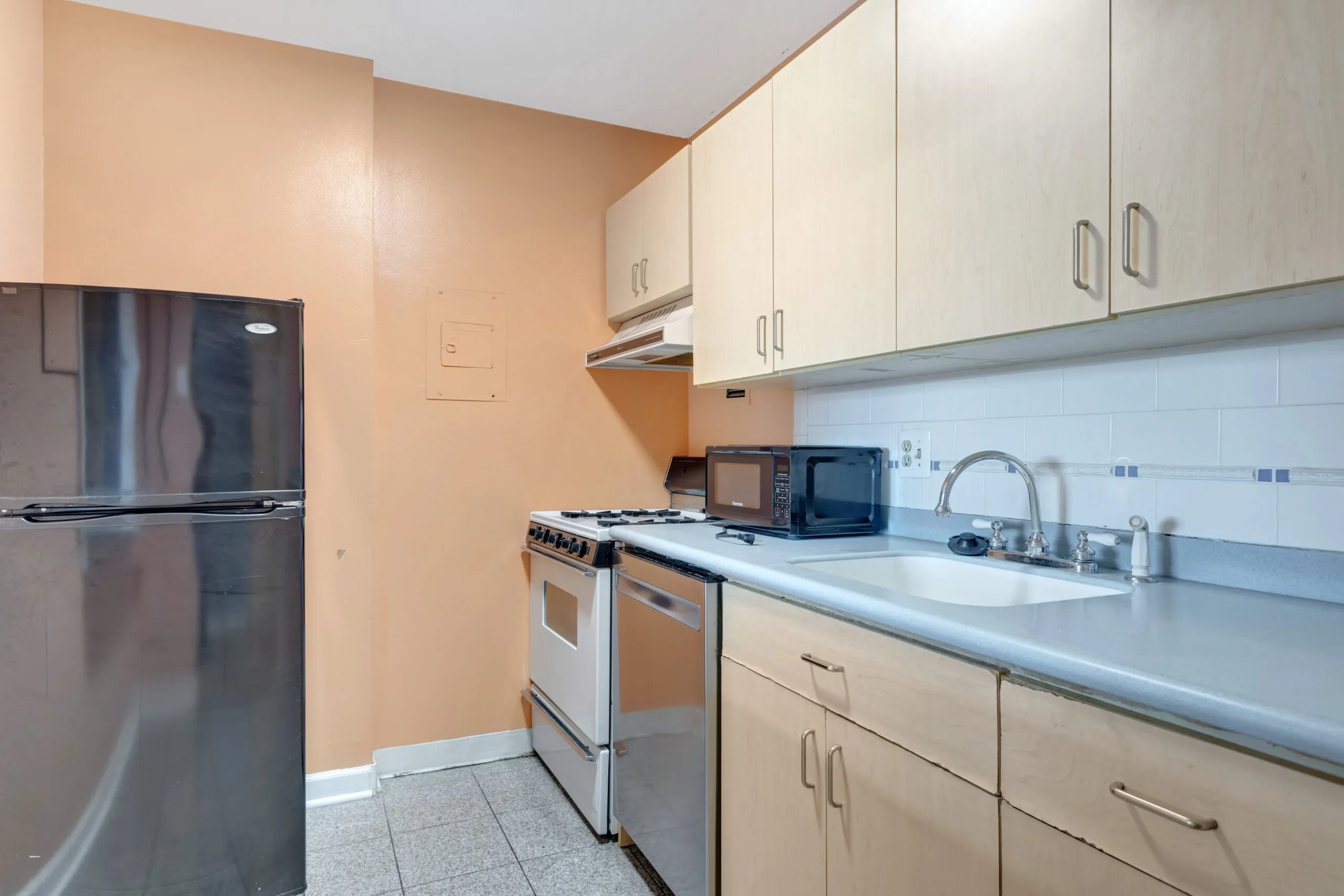 This charming studio apartment on the 8th floor has everything you need and more. At 467 sq ft, the unit offers plenty of storage space and a functional layout. You will love the abundant natural light, beautiful pale hardwood floors, and spacious living area with room for different living, dining, and sleeping arrangements. The galley-style kitchen features a subway tile backsplash, ample cabinet space, brand new dishwasher, and other stainless steel appliances. The home also offers excellent closet storage with custom shelving, and a large full bathroom with a shower/tub combo.