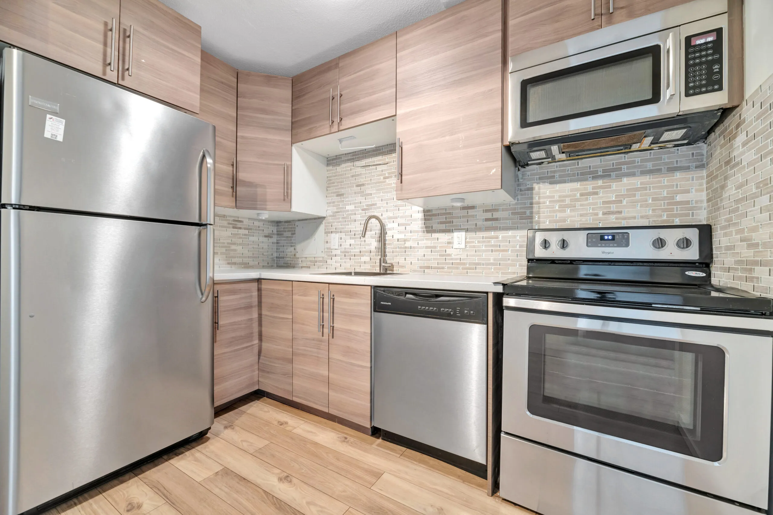 This beautiful unit is located in the heart of SW DC. The kitchen features a chic, contemporary style with wood cabinets and ample counter space. The open living area has lovely hardwood floors, tall windows, and excellent lighting.