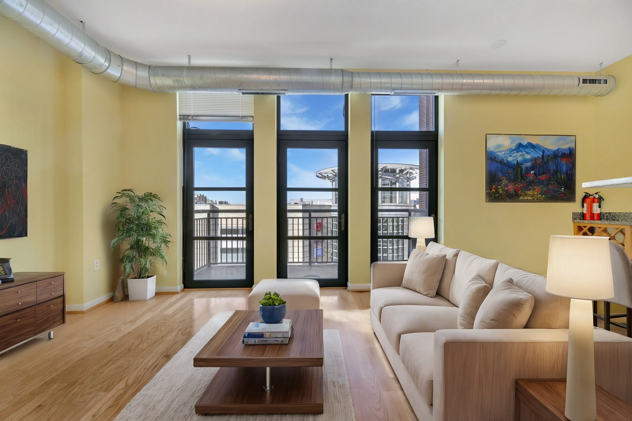 The property has a private balcony facing 14 St and the location! It’s in front of Target,2 supermarkets withing 1-2 mins walking distance, bus stop at 1 min walk, lost of commerce including restaurants and bars, and an exclusive exit almost in front of the Metro Green and Yellow Lines.