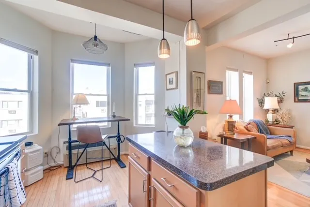 Beautiful Columbia Heights condo featuring rooftop deck, open-concept kitchen with large island, and stainless steel appliances! 1 parking spot in a nearby garage available for additional cost.
