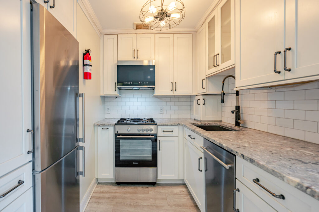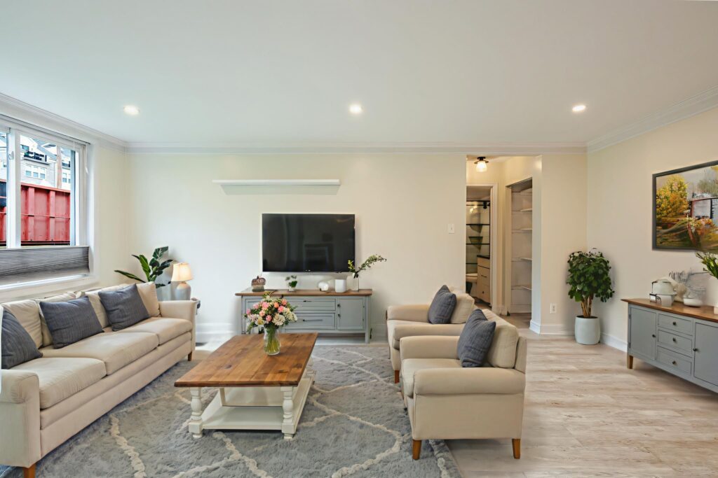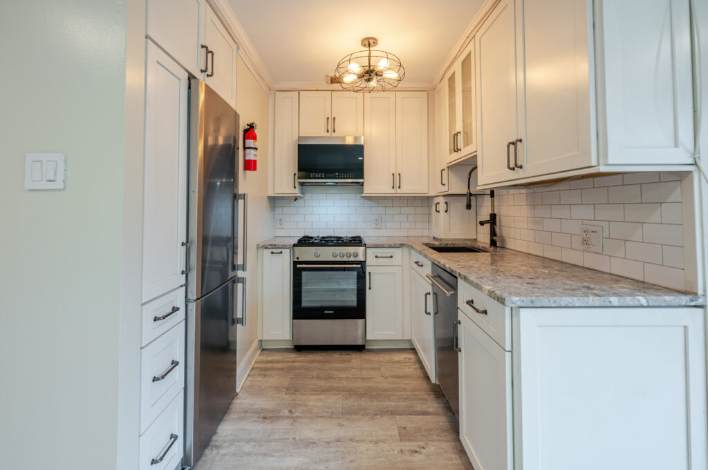 Modern finishes, updated kitchen, stainless steel appliances, open layout, recessed lighting, dual window exposure, renovated bathroom