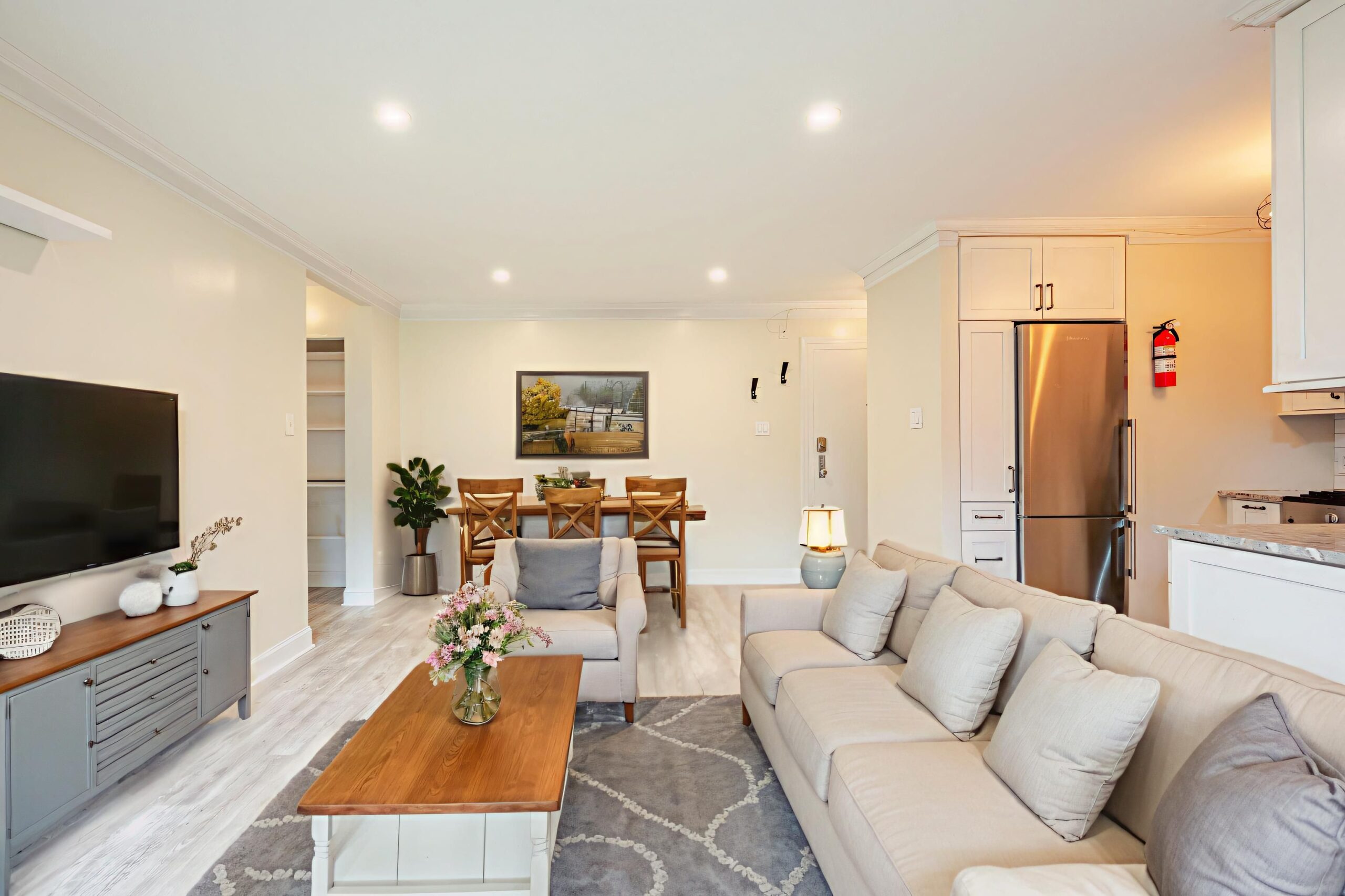 Get a bright and functional condo featuring an open layout that maximizes space and comfort. The unit offers updated flooring and recessed lighting, creating a clean and modern feel throughout. The kitchen is equipped with stainless steel appliances, sleek cabinetry, and a practical layout that connects seamlessly to the living area, making it ideal for both everyday living and entertaining. Large windows bring in natural light and enhance the sense of space. The bedroom is well-sized with good storage, and the bathroom has been tastefully renovated with a glass-enclosed shower and contemporary finishes.