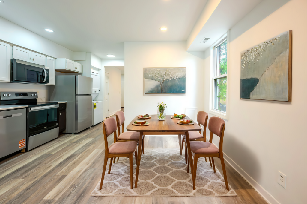 Welcome home to a bright and comfortable residence offering a well-proportioned layout with ample room to spread out. This home features a large living and dining area, central air conditioning, an updated kitchen with stainless steel appliances and plenty of cabinet space, and four versatile bedrooms ideal for a variety of living arrangements. Enjoy the convenience of an in-unit washer and dryer, efficient storage throughout, and two full bathrooms designed for functionality and comfort. Outdoor space includes a private backyard and side yard, perfect for relaxing or entertaining.